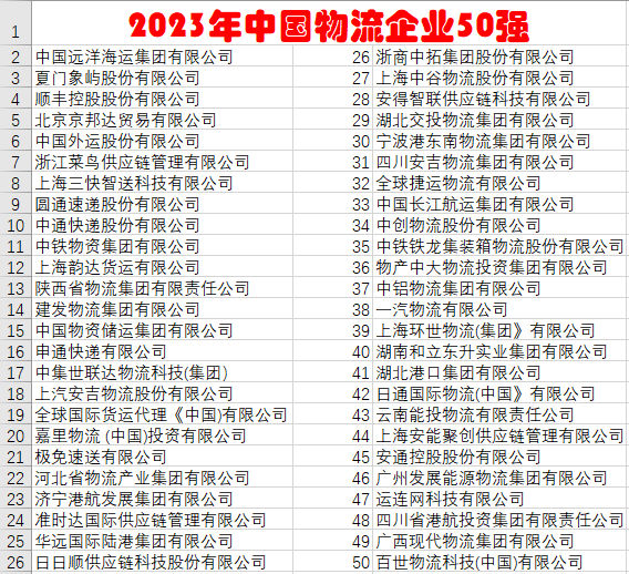 以上關于“2023年度中國物流企業50強榜單(附全榜單)”的知識,小編已經給大家詳細介紹清楚了,希望可以給大家幫助!了解更多關于物流知識,請隨時關注優騏物流。